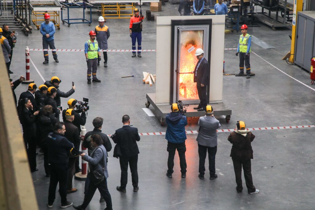 Bu testlerde, yangına dayanıklı kapı sistemlerinin 120 dakikaya kadar bütünlüğünü koruyacak şekilde tasarlandığı vurgulandı.