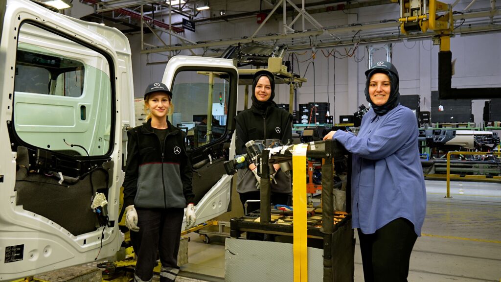 Kadın istihdamına verdiği önemi yürüttüğü programlarla aralıksız sürdüren şirket, 2025 yılında da Aksaray Valiliği onayı ve Ahiler Kalkınma Ajansı (AHİKA) koordinasyonunda, Mercedes-Benz Türk Aksaray Kamyon Fabrikası ve Aksaray İl Milli Eğitim Müdürlüğü ortaklığında “Üretim Benim İşim” Mesleki Eğitim ve Uzun Dönem Staj programını hayata geçirdi. 24 ay süren program kapsamında stajyerler, özellikle ağır sanayide kadınların tercih etmeyeceği “varsayılan” kaynak, elektromekanik (montaj), boyahane ve forklift alanlarında teorik ve uygulamalı eğitimler alarak, üretim bantlarında aktif görev alıyorlar. Aynı zamanda bu projedeki uzun dönem stajyerlerin tamamı katıldıkları eğitim ve uygulamalı pratikler sayesinde, forklift operatörü ehliyeti sahibi oldu.