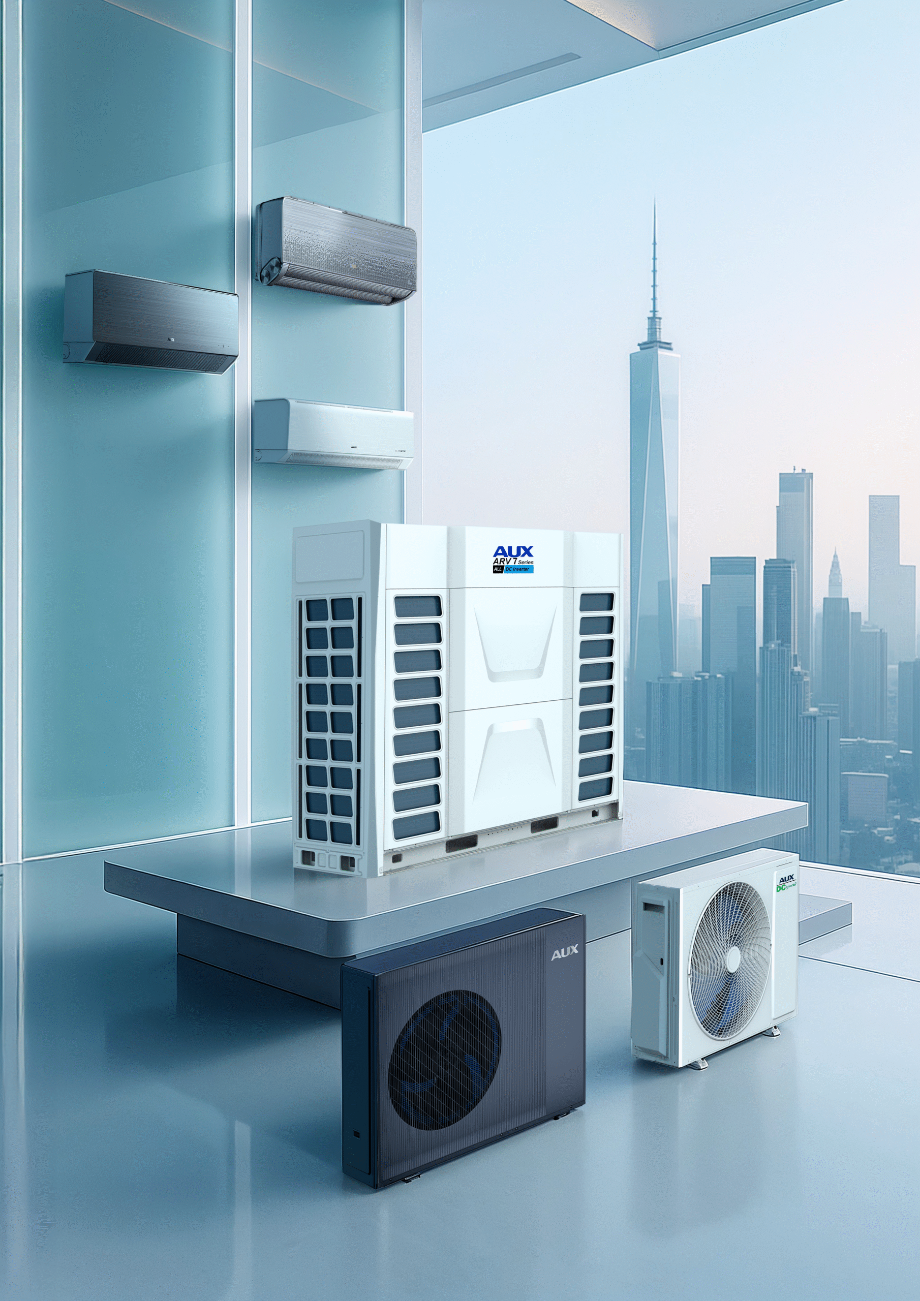 AUX’un ticari segmentteki amiral gemisi olan ARV7 VRF serisi, 42 HP’ye kadar kapasite, -30°C ile +55°C çalışma aralığı ve yüksek COP/EER değerleriyle projelerde fark yaratıyor. Sistemde kullanılan Gelişmiş DC inverter kompresör, enerji tüketimini minimize ederken uzun ömürlü performans sunuyor. Bu seri aynı zamanda Eurovent onaylı, akıllı kontrol sistemine sahip ve modüler tasarımıyla geniş ölçekli otel, ofis, AVM ve endüstriyel tesis uygulamalarında tercih ediliyor.